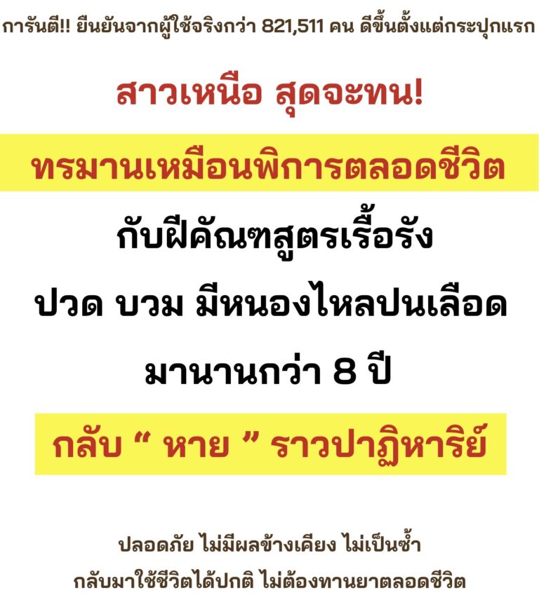 ในใจก็กลัวว่าจะได้ผลจริงมั้ยเพราะพี่รักษามาทุกอย่างแล้วไม่หายสักที แต่คิดว่าหากพี่มัวแต่กลัวไม่ลองก็ไม่มีอะไรดีขึ้น จ่ายค่ารักษามาก็เยอะมาก วันแรกทาน 2 เม็ดก่อนนอนคะ หลังทานได้ 7 วัน ไม่อยากจะเชื่อว่า อาการดีขึ้นอย่างน่าตกใจ พี่จึงทานต่อเนื่อง จนใกล้หมด
