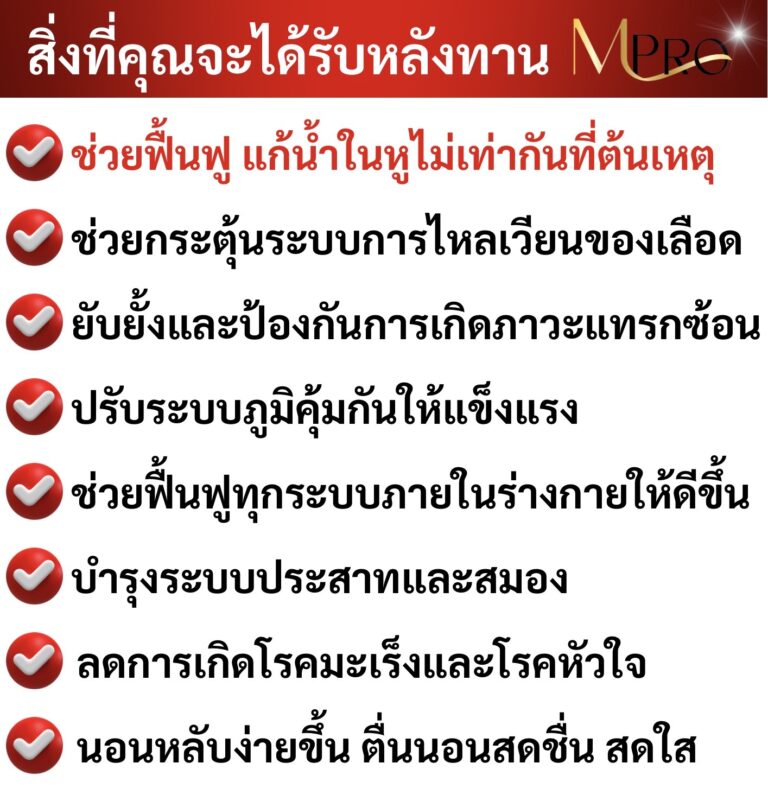 แต่พี่โชคดีที่เพื่อนของลูกชายแนะนำให้ทานสมุนไพรสกัดจากธรรมชาติที่ชื่อ MPro เพราะคุณแม่เขาก็มีอาการเหมือนพี่ แถมหนักกว่าพี่อีก ตอนเป็นถึงขั้นหัวใจเต้นผิดจังหวะ และต้องไปกายภาพบำบัดด้วยเครื่องสัปดาห์ละ 2-3 ครั้ง รักษากับหมอดังๆมาเยอะมาก แต่ก็ไม่หาย เขายังทานแล้วหายเป็นปกติ พี่เลยสั่งชุดโปร 2 แถม 1 มาลองทาน