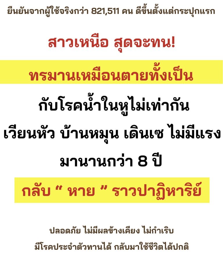 พี่เลยสั่งมาทานเพิ่มอีก รอบนี้จัดชุดใหญ่โปร 4 แถม 2 มาเลย อาการของโรคน้ำในหูไม่เท่ากันที่พี่เป็นอยู่ ดีขึ้นเรื่อยๆ คือเหมือนได้เกิดใหม่เลย หลับง่ายขึ้น ตื่นมาไม่เพลียเหมือนยาโรงพยาบาล พี่ทานต่อเนื่องมาจนตอนนี้หายเป็นปกติแล้วคะ ผู้เชี่ยวชาญด้านผลิตภัณฑ์น่ารักมาก ให้คำแนะนำพี่ตลอด สำหรับใครที่เป็นโรคน้ำในหูไม่เท่ากันหรือคนใกล้ตัวเป็นแบบพี่ อยากให้ลองคะ